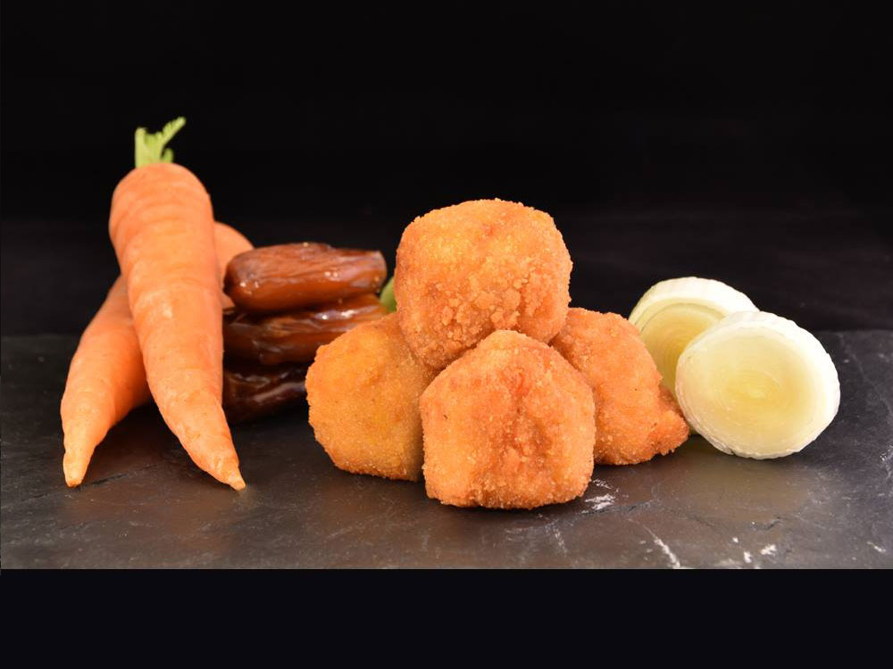 5. Croquetas de Puero confitado, Dátiles y Zanahoria 20 croquetas (500 gr.) De zanahoria, puerro confitado y dátiles, un sabor novedoso y que hará las delicias de los paladares más exigentes. No encontrarás una forma tan sencilla de comprar croquetas de verduras a domicilio.