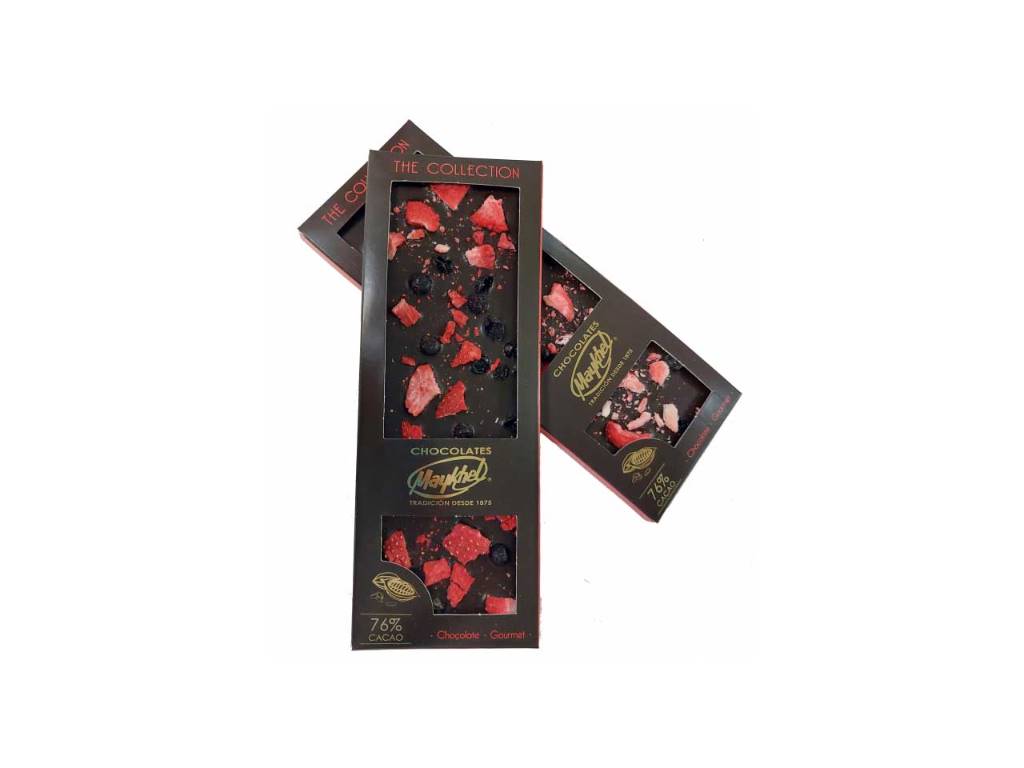 7. Tableta Artesana 76% Cacao con Sabores Con Café / con Quinoa Tricolor / con Nibs de Cacao / con Caramelos de Violeta / con Fresas y Grosellas.